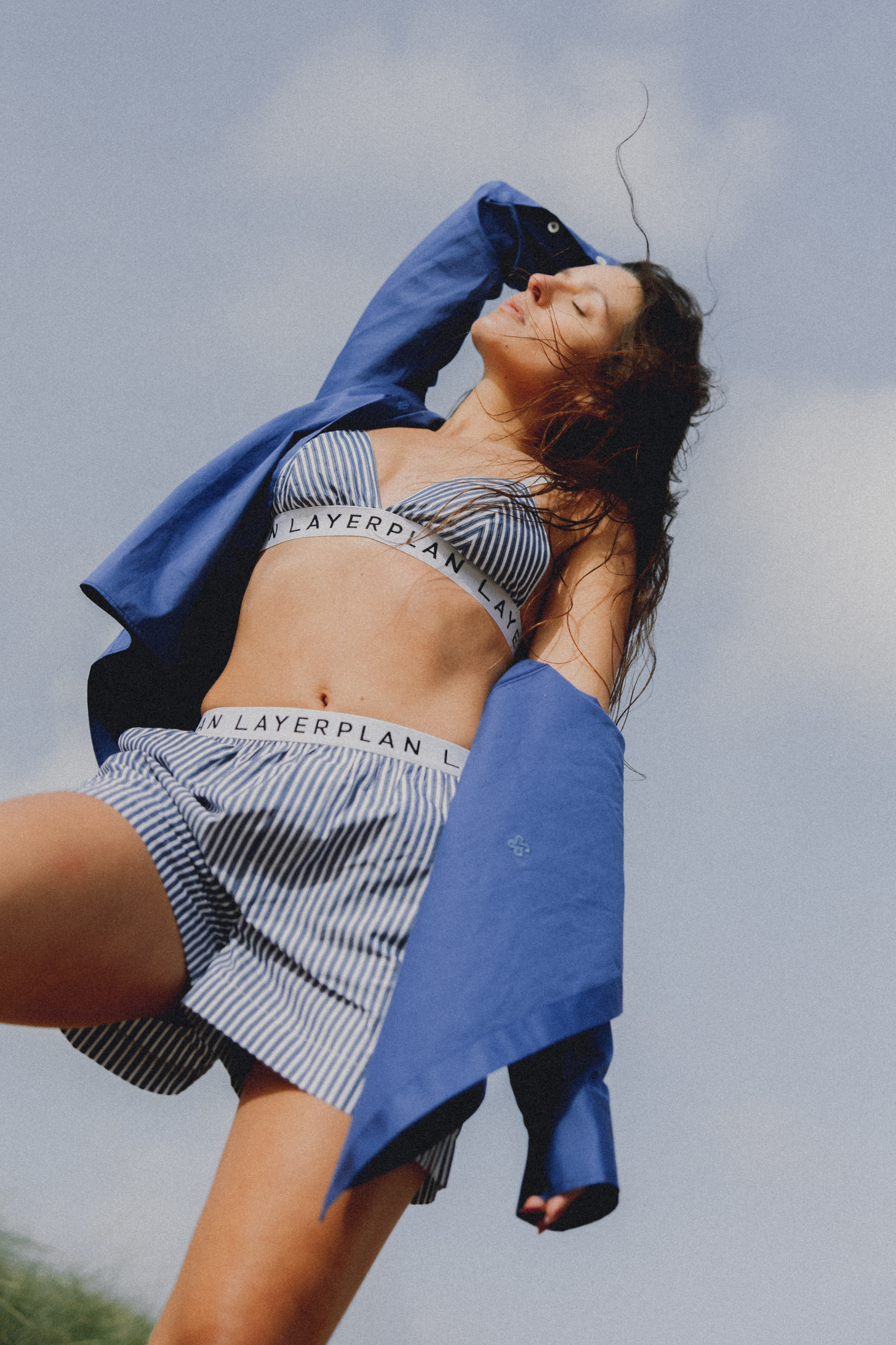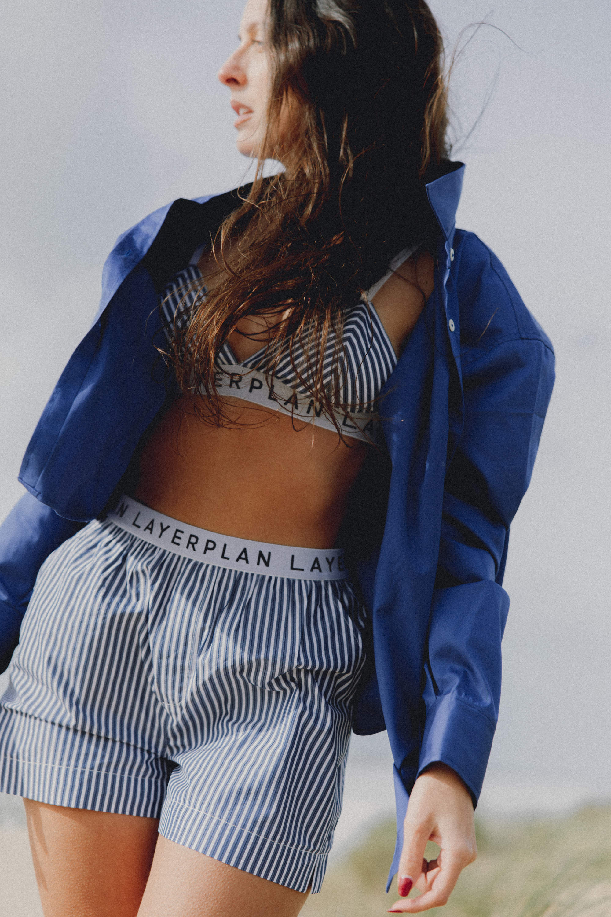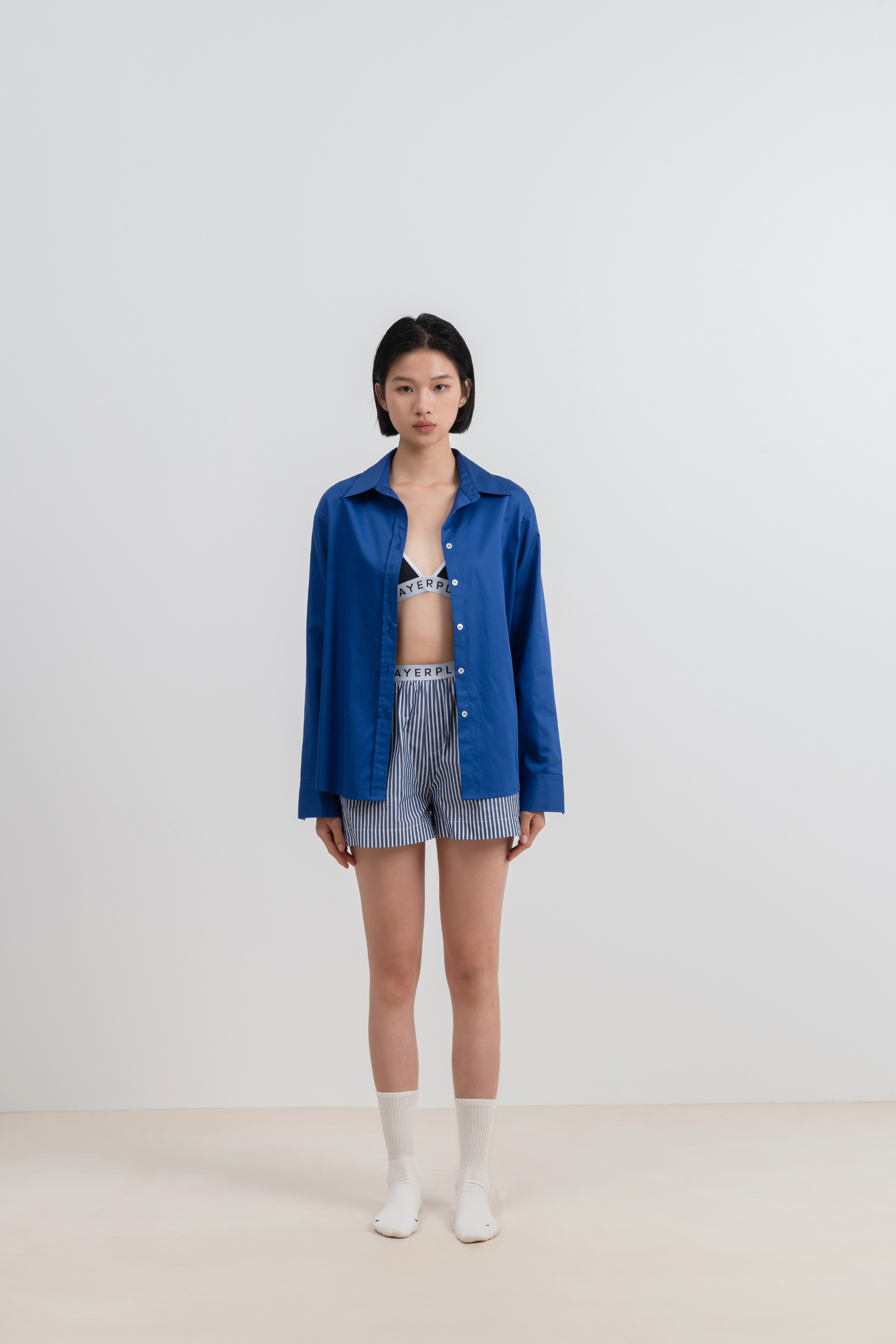 - Includes oversized shirt, loose fit shorts and a bralette